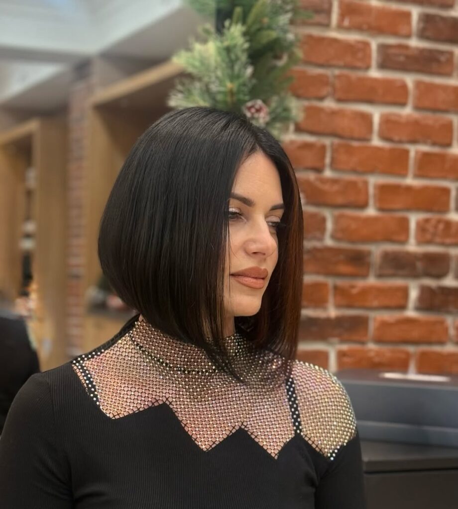 Undeniably trendy, this short style proves that long hair is unnecessary for a showstopping festive look, relying instead on high-impact color and a great silhouette. The smooth finish and the soft, face-framing sections make this a versatile and elegant choice for any gathering.