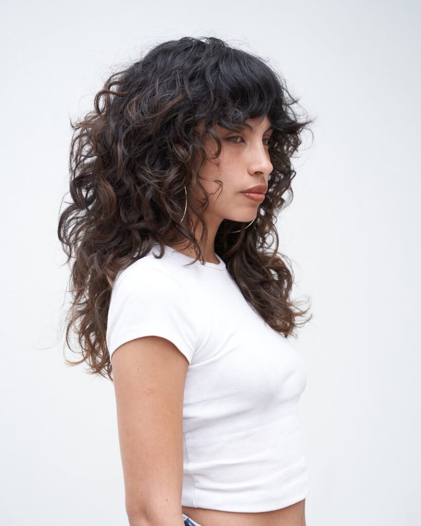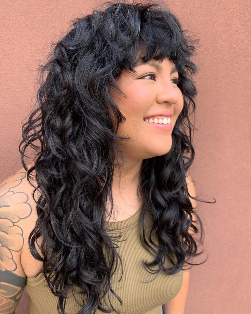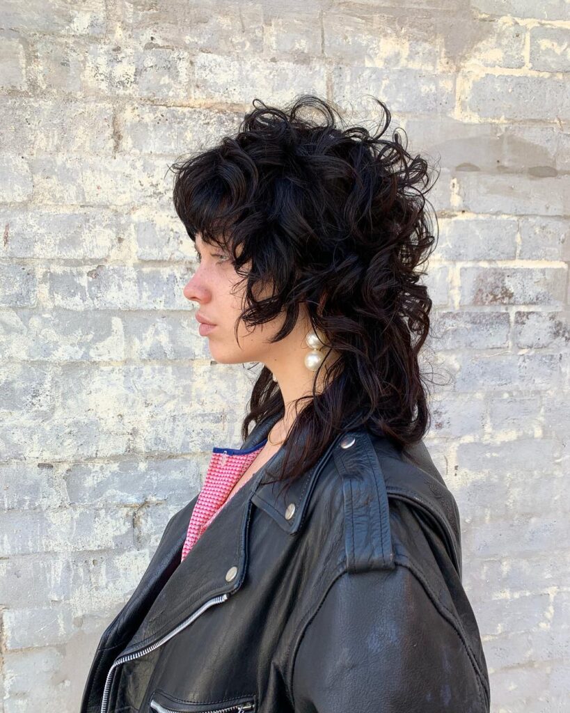 Furthermore, this rich, dark style is a magnificent example of a trendy curly mullet that expertly utilizes long hair for dramatic effect while retaining a contemporary, shaggy shape. To maintain the deep color and healthy shine of these long waves, utilizing a lightweight serum and minimizing heat styling are highly recommended.
