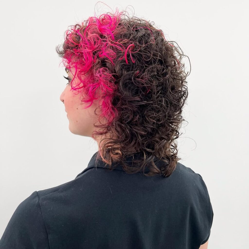 This edgy two-toned approach provides a wonderful contrast, making the signature short-long structure of the curly mullet truly pop with energetic flair. Furthermore, the brightness of the pink captures attention, transforming an already trendy cut into a high-fashion, statement-making hairstyle.
