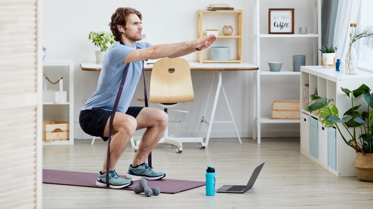 How to do it: Put a resistance band around your ankles. Take wide steps to the side, keeping tension in the band. Stay low like you’re sitting in a chair.