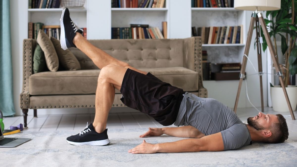 Progress step by step: Week 1-2: Double-leg bridges, 15 reps Week 3-4: Single-leg bridges, 8-10 reps per side