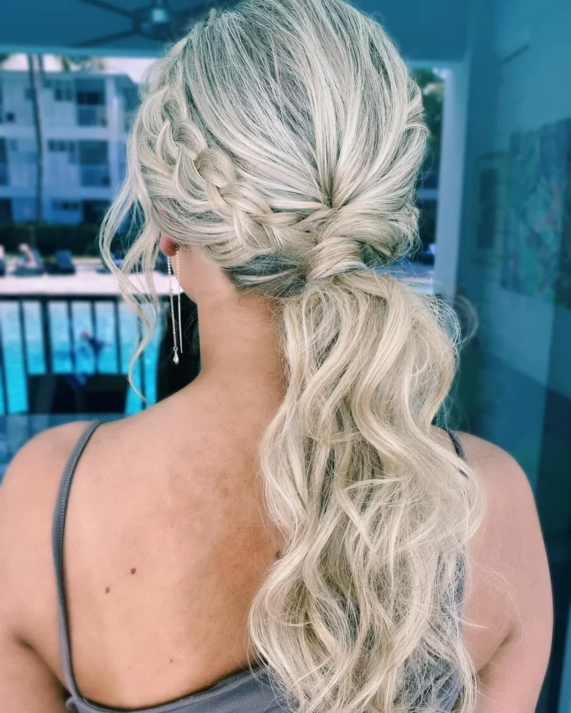 Furthermore, the crisscross sections at the base of the ponytail hide your elastic with elegant precision. Small bobby pins keep the side pieces secure while maintaining that soft, touchable finish you see here. It works beautifully for those who need to transition from professional meetings to evening dinners quickly.