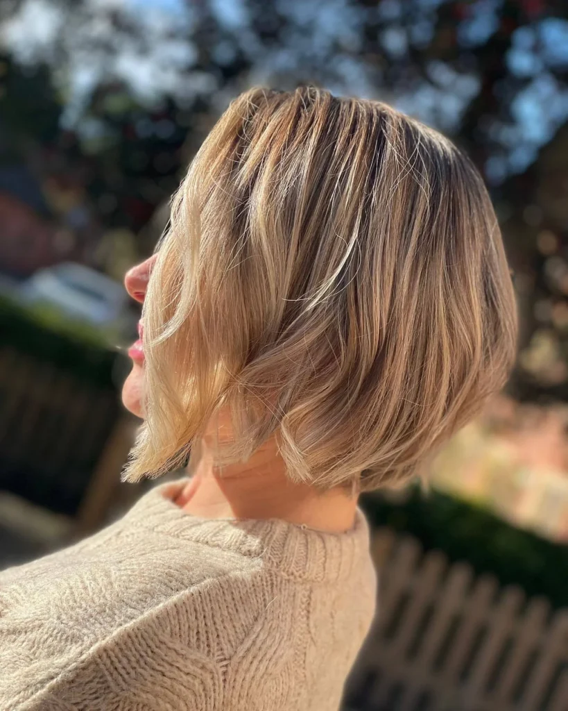 Luminous honey tones radiate warmth through this short, layered cut designed for rapid morning routines. Gentle waves add a soft texture that helps fine hair appear much thicker and more vibrant. Styling requires only a small amount of sea salt spray and a few seconds of finger scrunching.