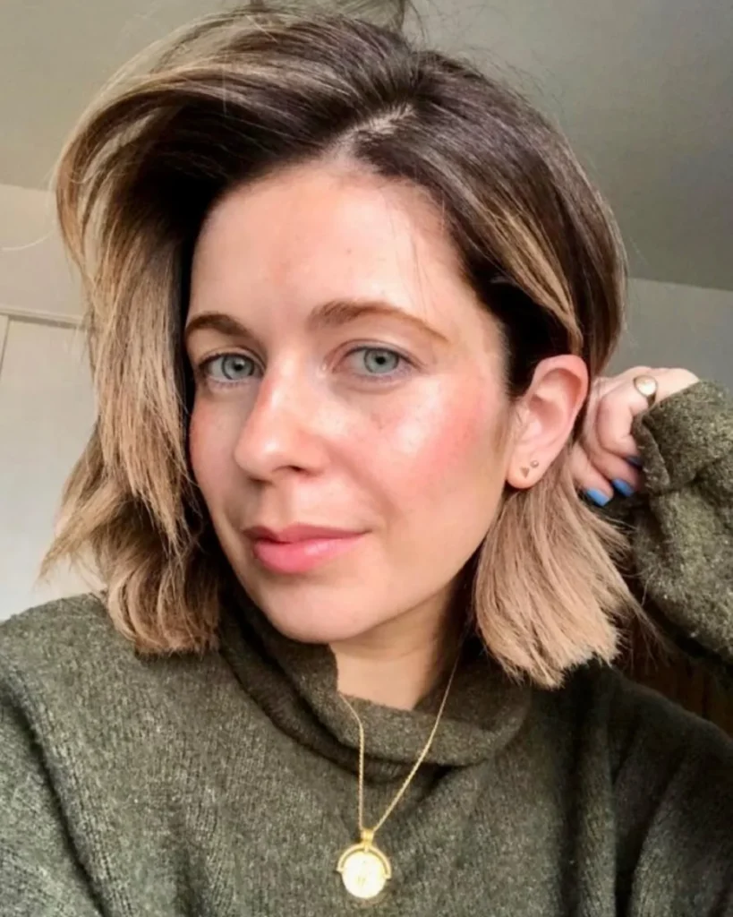 Luminous highlights dance through the layered ends, providing a sense of depth and movement to the hair. Tucking one side behind the ear keeps the face clear and highlights your features during active workdays.