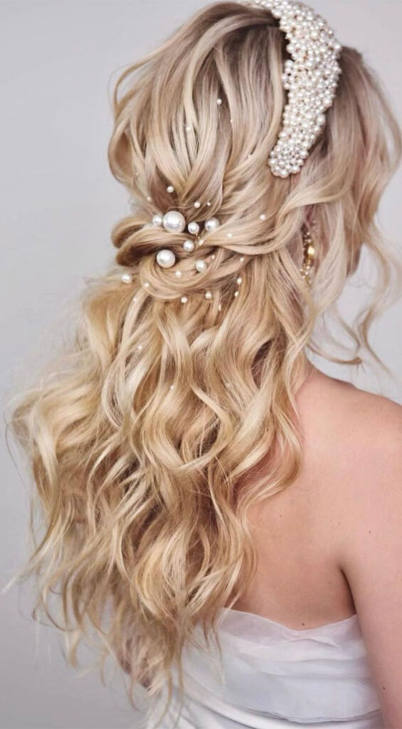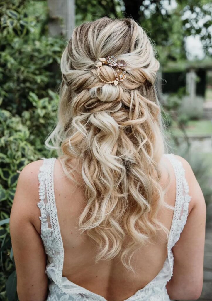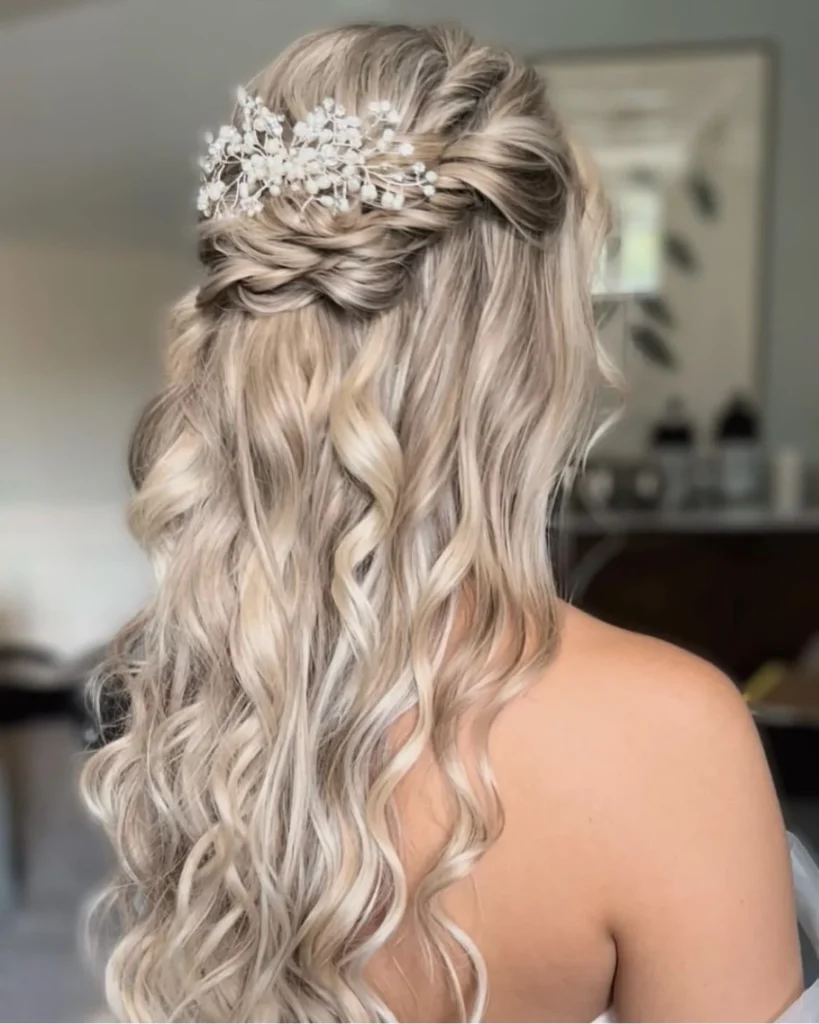 This collection of 21 half-up up half-down wedding hair ideas provides endless inspiration for every hair type and theme. You might prefer romantic braids adorned with wildflowers or sleek waves pulled back with sparkling pins.