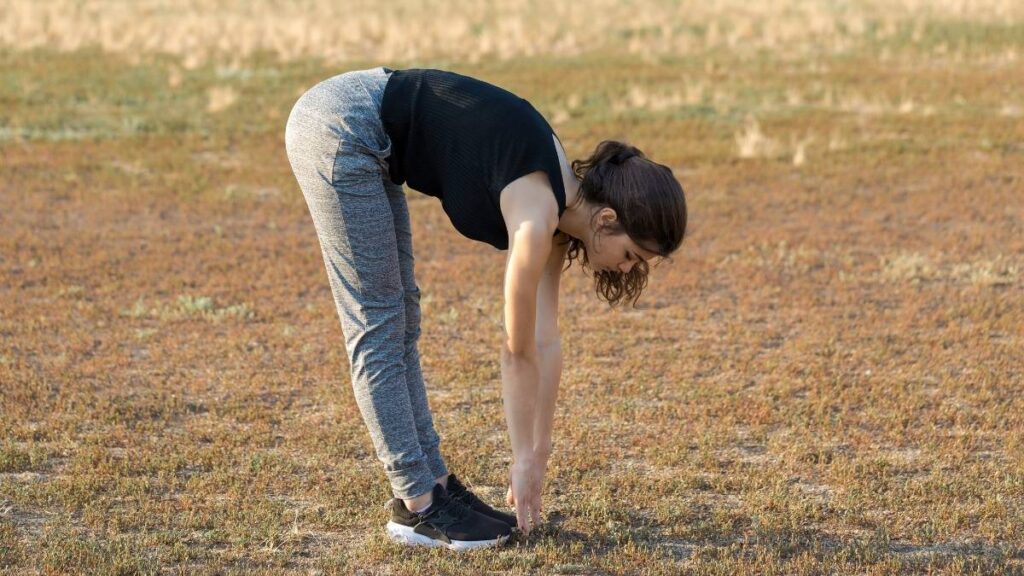 This standing stretch melts away tension in your spine, glutes, and hamstrings. It’s perfect after hours of sitting. Your entire back gets a chance to decompress.