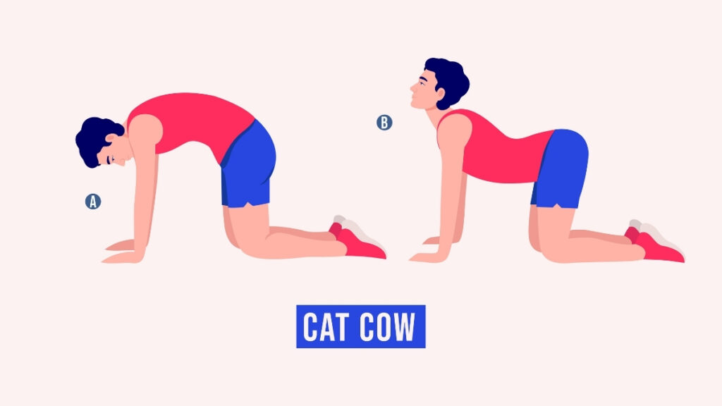 - Cat-Cow (2 minutes) – This mobilizes your spine before the day begins