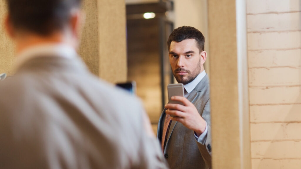The fix is simple. Look down with your eyes, not by bending your neck. Hold your phone higher. Bring it up to eye level instead of dropping your head down to phone level.