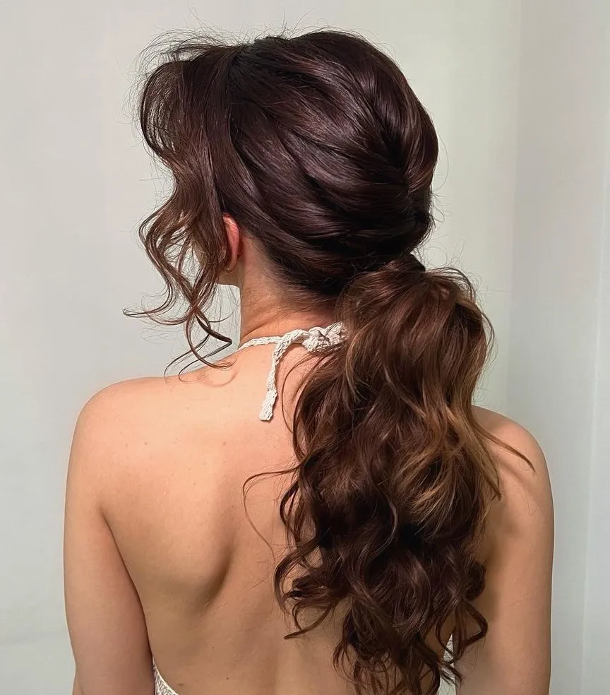 Luminous depth is achieved through the rich brunette palette that catches the light within each individual twist. Recreating this airy silhouette involves using a wide-barrel curling iron on the tail and then gently brushing through with your fingers. Fine strands are left intentionally wispy around the hairline to maintain an effortless, lived-in charm that works for day or night.