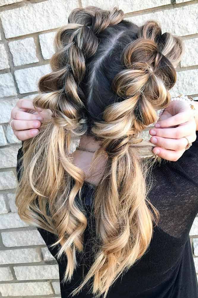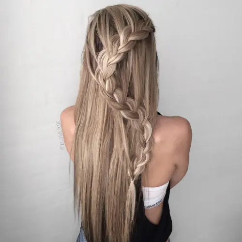 Curating this appearance requires starting with a thick Dutch braid on each side of your head. Gentleness is key when you pull at the loops to create that full, voluminous effect seen in the image. Secure the base at the nape of your neck with clear elastics to let those golden waves cascade freely over your shoulders.