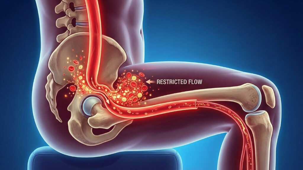When you sit for long periods right after training, you restrict blood flow. Less blood flow means fewer nutrients reaching your muscles. The protein shake you drank? It's moving slower than it should.