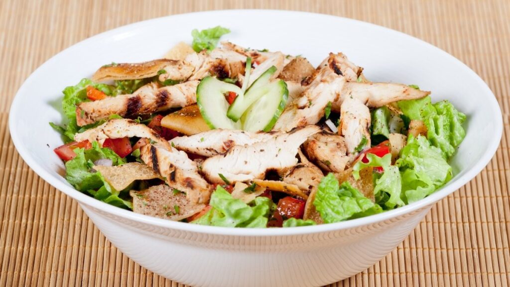 Day 1: Break your fast at noon with a chicken salad. Have an apple with nuts for a snack. Finish with baked salmon and greens at 7 PM.