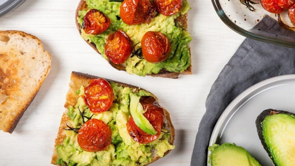 Mash half an avocado on whole-grain toast. Top with a sliced hard-boiled egg and cherry tomatoes.
