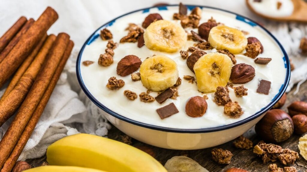 Why it works: Oats lower cholesterol. Walnuts protect your brain. The milk and yogurt add calcium and protein.