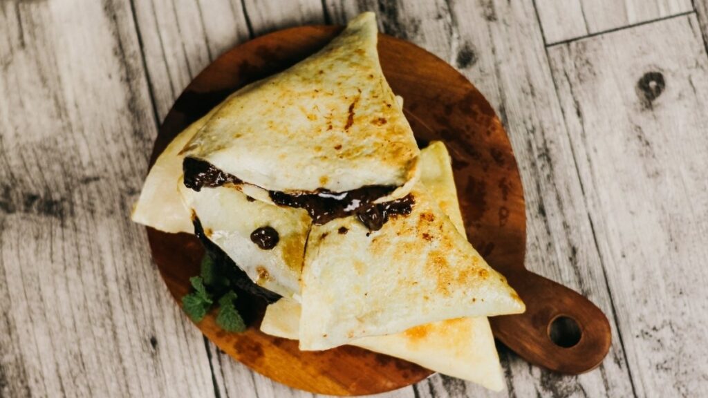 Mash ½ cup black beans. Mix with roasted sweet potato cubes. Add ¼ cup cheese. Fold in a whole-wheat tortilla and cook until golden.